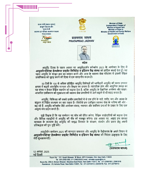This historic event invites doctors, researchers, industry leaders, students, and Ayurveda enthusiasts to be a part of a transformative journey. Together, we will demonstrate how Ayurveda, when blended with modern technology, can *reshape global healthcare conversations*.